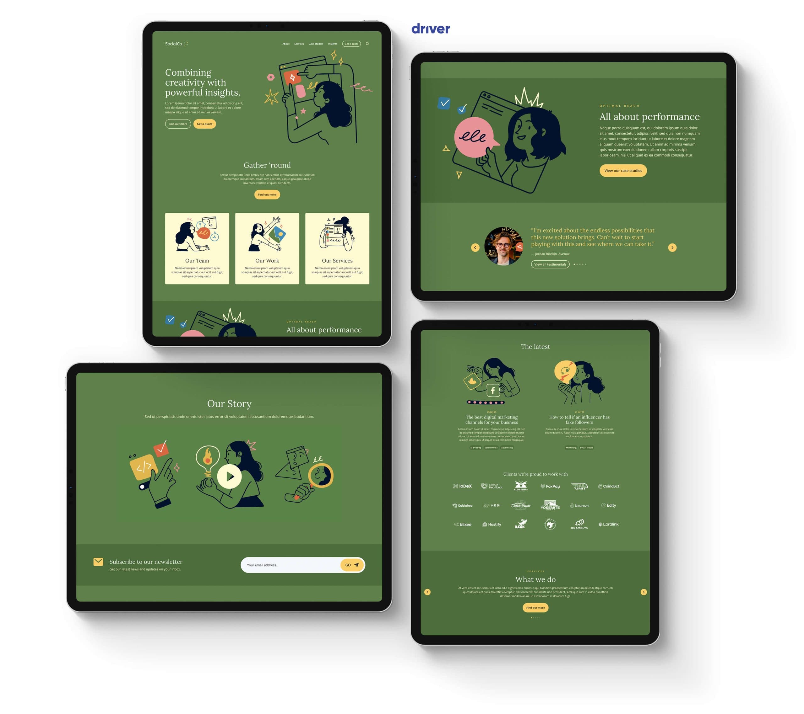 Illustrative brand components blend seamlessly within Driver to create unique & striking websites for all business industry sectors.